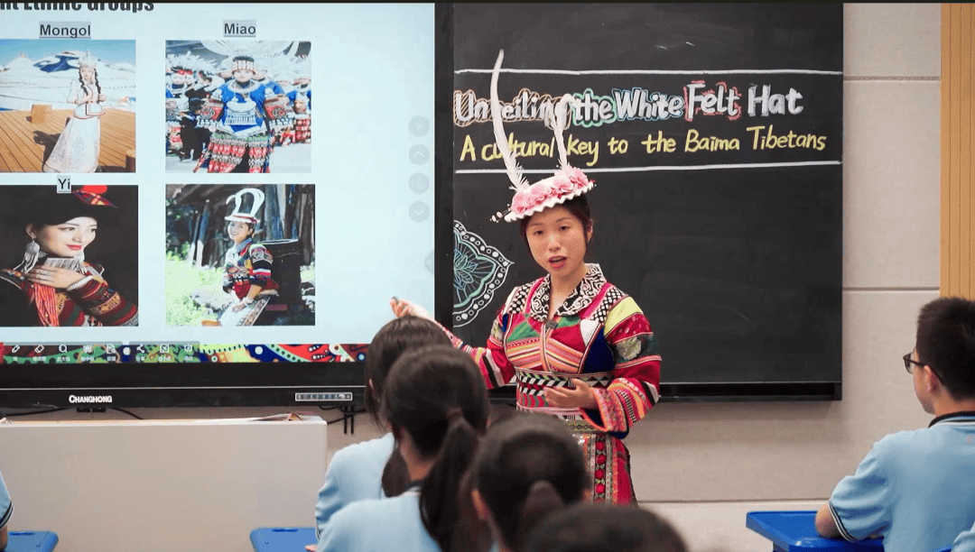 王老師讲述了四川绵阳平武县的一个古老而神秘的民族——白马藏族。从他们的民族服饰再到少数民族文化的传承,学生们领略到了白马藏族文化独特魅力。正如 “民族的就是世界的”,每一个民族的文化都是中华文化宝库中璀璨的明珠,讲好白马藏族这样鲜活的民族故事,正是讲好多元一体、博大精深的中国故事的生动实践。